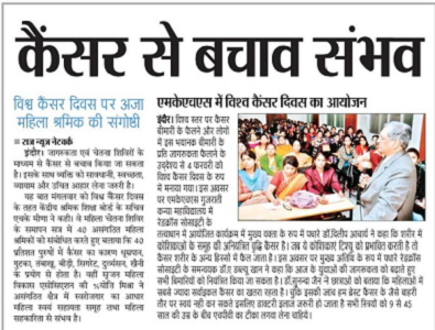 An email with all the details about Cancer incidence, prevention & early detection was sent in late January/early February to all the CWC members, all state Presidents & secretaries. Many city branches conducted awareness programs, took out rallies, arranged talk/lectures in various public forums including school & colleges to create awareness and importance of early detection of cancer.